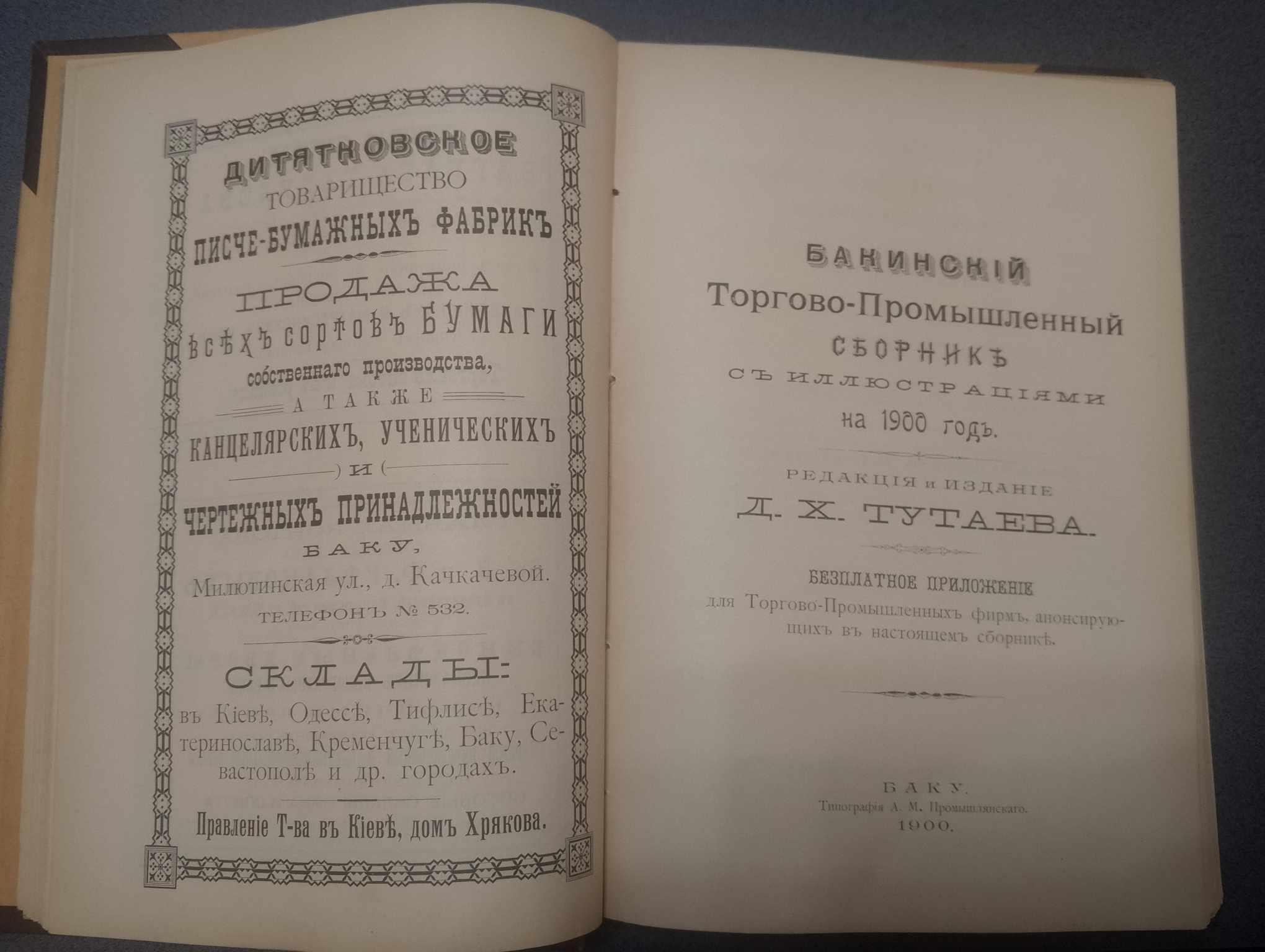 В Фонде редких книг библиотеки Национального музея истории Азербайджана хранится уникальный экземпляр издания «Бакинский Торгово-Промышленный сборник». В нём отражена подробная информация о торговле и промышленности Бакинской губернии. Здесь представлен обзор экономической ситуации в губернии, информация о вновь созданных и ликвидированных предприятиях и компаниях в 1900 году, ценах на товары и услуги, тарифах на перевозки по железной дороге, морским и речным судам и т. д. На странице 64 этой книги также приводится информация о школе садоводства на 40 учеников, расположенной на участке площадью 10 гектаров в Мардакане, которую Г.З. Тагиев открыл на собственные средства. В этом издании публиковались рекламные объявления различных предприятий и компаний.